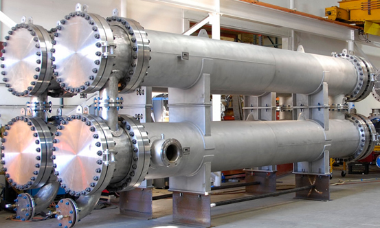 管殼式換熱器采用雙聯(lián)結(jié)構(gòu),由兩只相同面積的冷油器和三通閥裝置構(gòu)成,一只工作,一只備用,每個冷卻器能承擔整個系統(tǒng)的冷卻負荷,管板一頭固定,一頭浮動、可拆卸的管束和水室箱蓋,便于運行過程中清洗、檢查和維修。管殼式換熱器材質(zhì),根據(jù)使用場所、水系統(tǒng)條件可有多種選擇。
